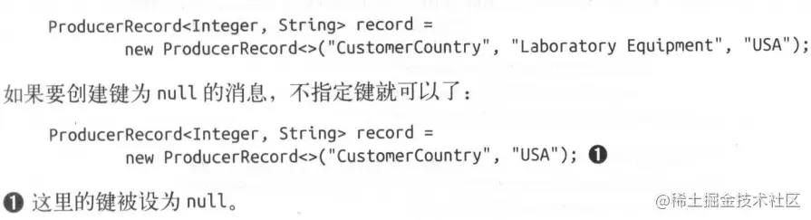 说,如果一个进程只从一个主题的分区读取数据,那么具有相同键的所有记录都会被该进程读取。要创建一个包含键值的记录,只需像下面这样创建