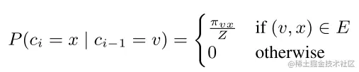 对起始点,模拟一个具有固定长度的随机游走,是第个点(),按照下面的分布生成: