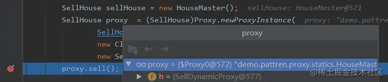 动态代理创建的是SellHouse的一个子类,通过Debug来看一下创建的到底是什么对象。