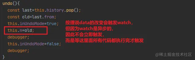 - watch是异步的, 异步的意思是在当前所有代码执行完了才会执行watch内的代码