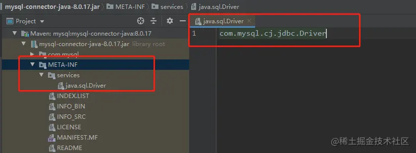 约定一个地方直白点说就是代码里面写死了一个目录,这个目录就是 META-INF/services/。