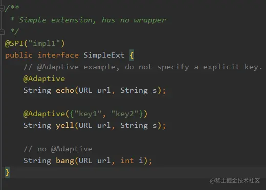 有个叫 SimpleExt 的类,有三个实现,默认的实现是 impl1。