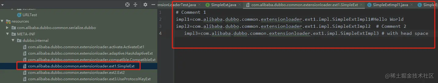 好了,小技巧分享完毕,回到 ExtensionLoader,我们简单点就用 Dubbo 单元测试的数据来看看实现。