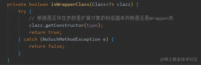 然后上面提到的 AOP 相关的 cachedWrapperClasses 就是在这里记录的,如果判断它是包装类呢?