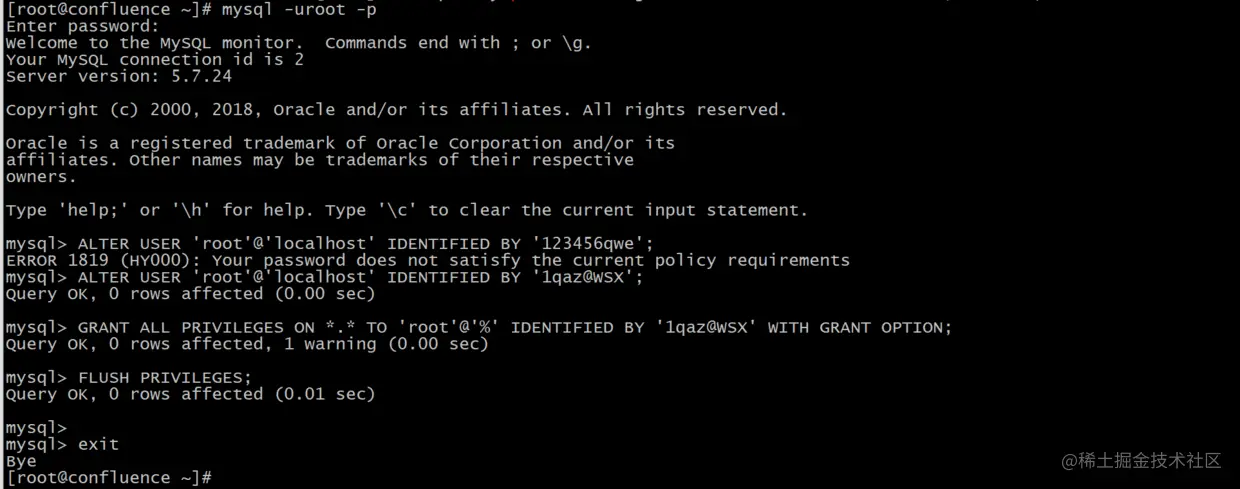 ALTER USER 'root'@'localhost' IDENTIFIED BY '1qaz@WSX';