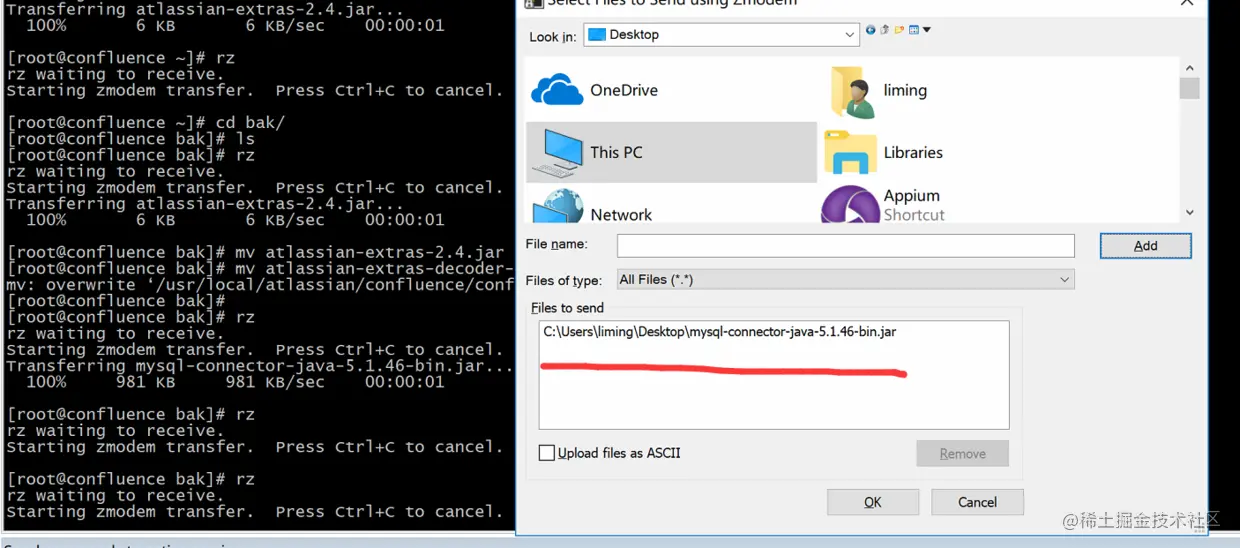 Confluence本身是没有集成mysql驱动的,需要自己下载并上传,原本在你安装的时候,输入key之后,会需要填入mysql连接信息,那里会有链接指向官方文档,教你如何配置mysql。但是配置完成后需要重启,会导致前面的破解出问题,所以,这里要一起完成后再重新启动。官方教程文档地址如下: confluence.atlassian.com/doc/databas… 源码中包括:mysql的驱动 解压后把mysql-connector-java-5.1.46-bin.jar传到服务器上,放到confluence的类目录下: