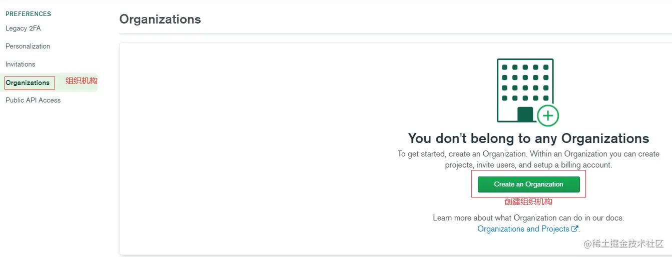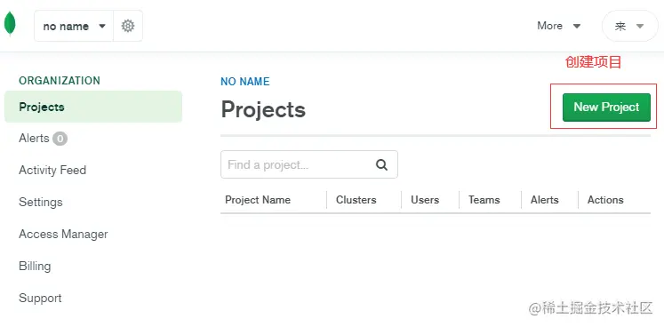 创建好了组织后会进入组织的页面,然后我们需要创建项目,单击 New Project 按钮