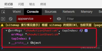 success回调事件结果如下。其中tapIndex对应定义itemList的数组序号
