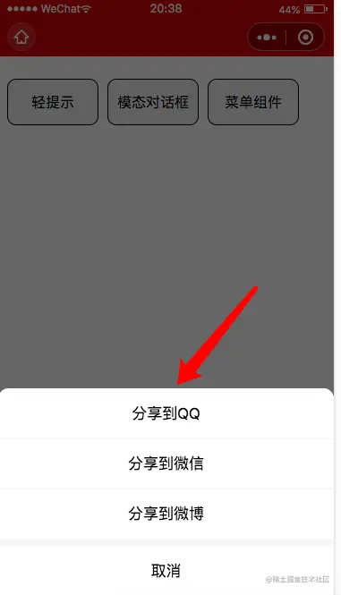 itemList: ['分享到QQ','分享到微信','分享到微博'],