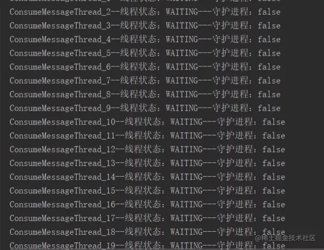 3,定时任务查询消费线程状态,所有状态为waiting。