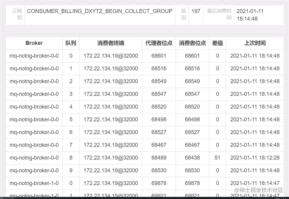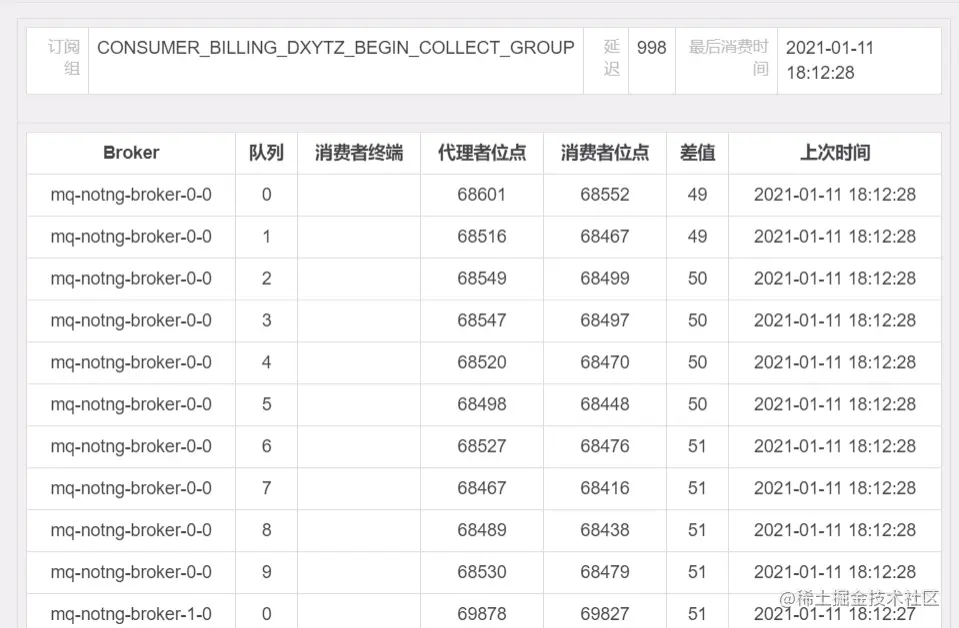 2, 通过测试环境验证及生产服务日志分析后、当时提供的生产MQ偏移量统计截图可能数据更新不及时。