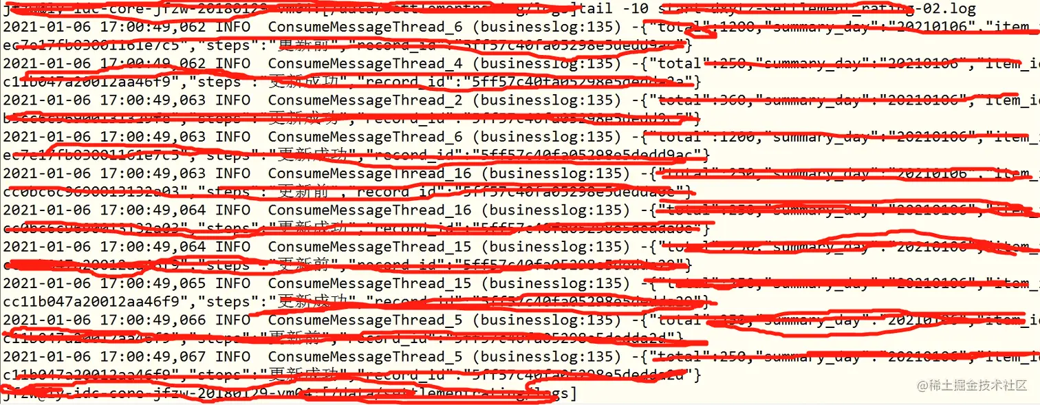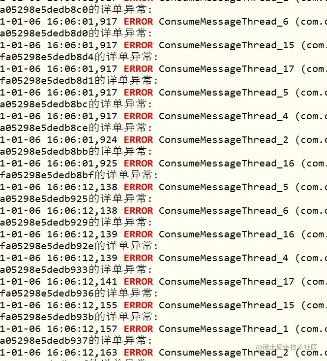 通过手动恢复后的ComsumeMessageThread-1线程会对20个messagequeue中的消息进行消费且偏移量会进行减少,与1月6号生产情况不一致。