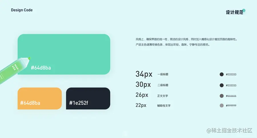 设计规范不仅对设计师非常重要,研发团队在开发过程中,同样也会从规范中获取一些定义好的变量名与组件代码。