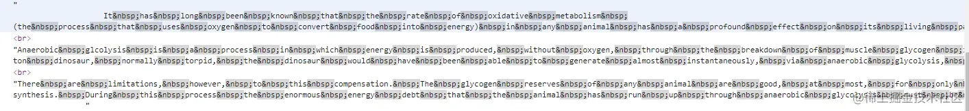 后来,一点点复现,找到问题,由于是编辑器里的内容,后台给我返回的数据,将原本的空格转换成了 ,是下面这个样子