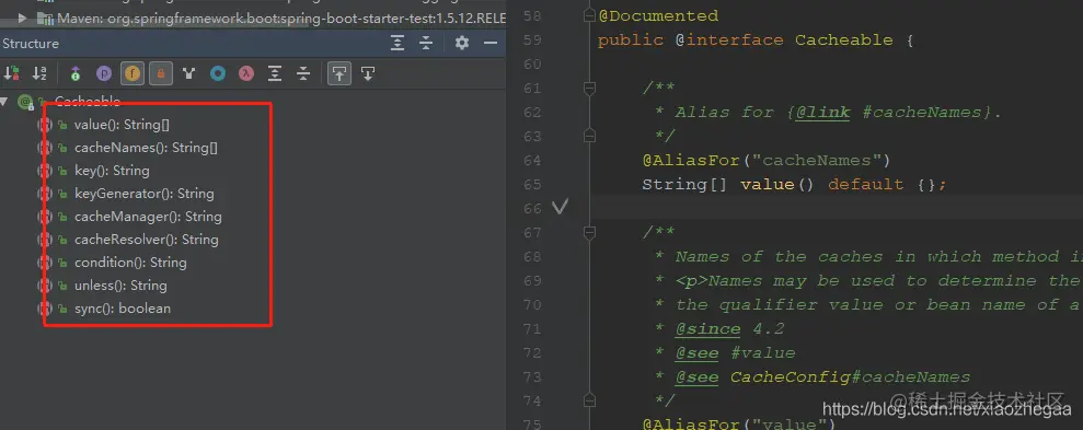 cacheNames/value:指定缓存组件的名字,支持多个名字,必须填写的。例如员工缓存组件、部门缓存组件,也可以同时指定