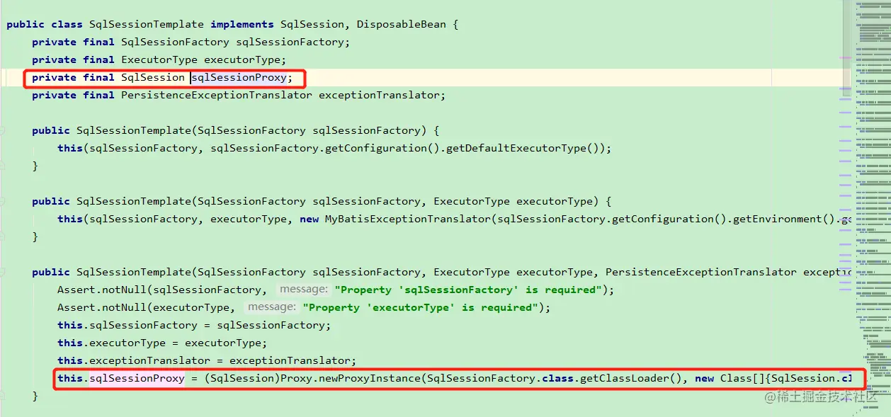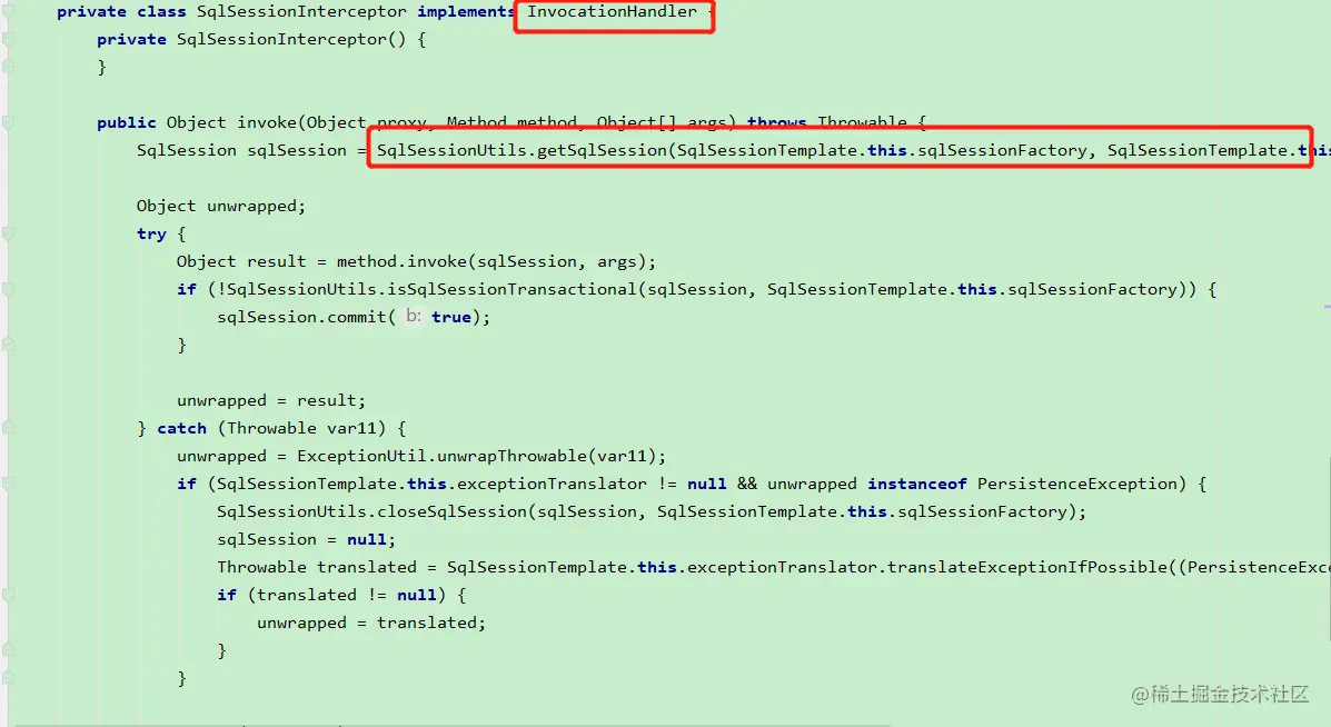 JDK代理是对接口进行代理,并指定代理类。因此SqlSessionTemplate实例代理的SqlSession接口最终的实现在DefaultSqlSession。