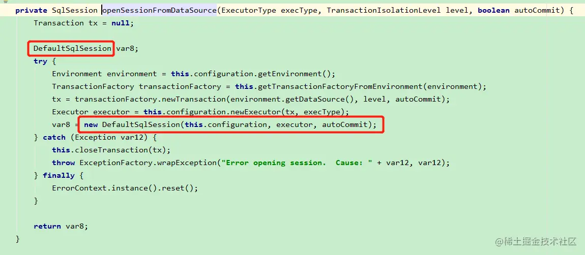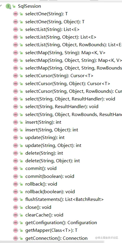 SqlSession 由 SqlSessionFactory创建,并包含了操作数据的所有接口。默认实现是DefaultSqlSession,spring管理的实现SqlSessionTemplate。
