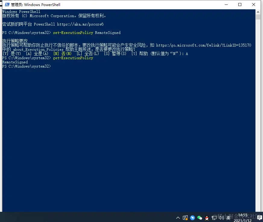 cnpm - 解决 " cnpm : 无法加载文件 C:\Users\93457\AppData\Roaming\npm\cnpm.ps1,因为在此系统上禁止运 胖次超人 2021-01-12 169 阅读1分钟 1.在win10 系统中搜索框 输入 Windos PowerShell 选择 管理员身份运行 2,打开了powershell命令行之后,输入 set-ExecutionPolicy RemoteSigned 然后更改权限为A 最后通过 get-ExecutionPolicy 查看当前的状态 THE END ...