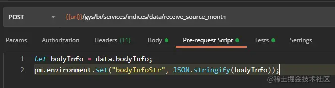 1. 如body中使用的变量需要是对象或数组,则需要将对象或数组通过JSON.stringify()转换成字符串后,赋值给变量才能成功调用接口;