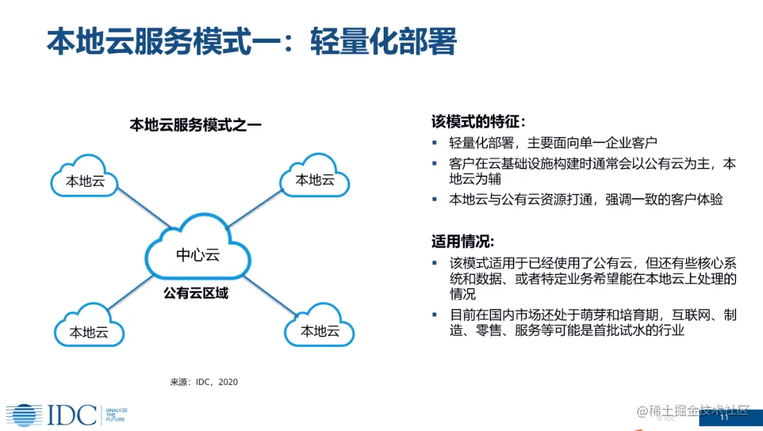 按照IDC的分析,本地云服务其实可以分为两种不同的模式:轻量化部署和规模化部署。