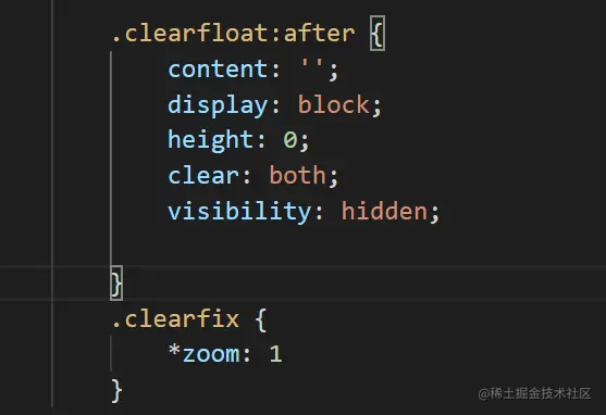 清除浮动的几种方式 加油奋起学前端_ss 2021-01-12 186 阅读1分钟 1.在要清除浮动的那个元素后面添加一个空div元素,并设置其CSS为 clear:both; 2.给要清除浮动的那个元素的父元素添加overflow:hidden(一定是给父级元素添加); 3.给父元素添加:after和*zoom伪元素; 4.给父元素添加双伪元素;