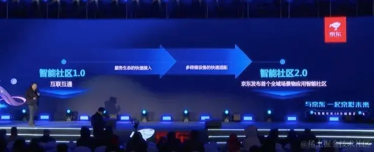 随后,京东开始着手接入服务、将服务接入社区。京东智联云loT产业物联网总经理王雅卓在大会上指出: 在接入服务过程中,我们发现了两个痛点:服务生态快速接入和多终端设备的快速适配。正因如此,京东此次发布了基于物应用的智能社区2.0。