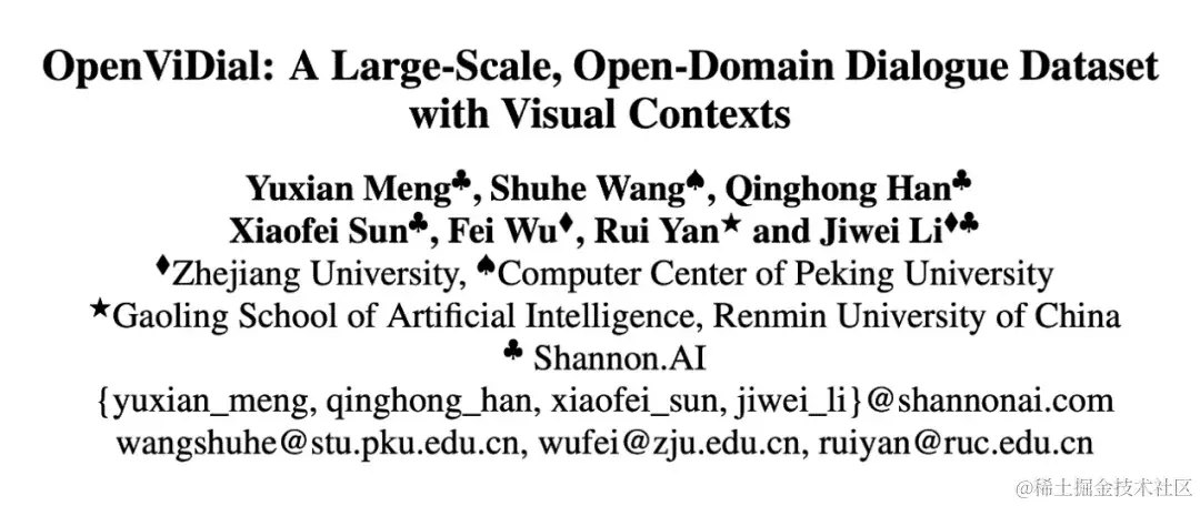 人类对话不仅仅只依靠聊天内容,更需要利用视觉信息。本文构建了一个大规模多模态对话数据集,从电影和电视剧中抽取出(句子,图片)对,经过数据处理与清洗,最终得到一百万余条句子,及其对应的图片信息。此外,本文还构造了三个融合多模态信息的模型。