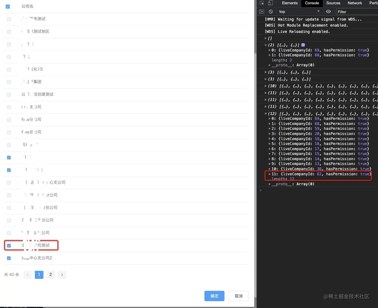 我们取消一项已选的,现在changList长度还是12,但是取消的那一项的标志变成了false