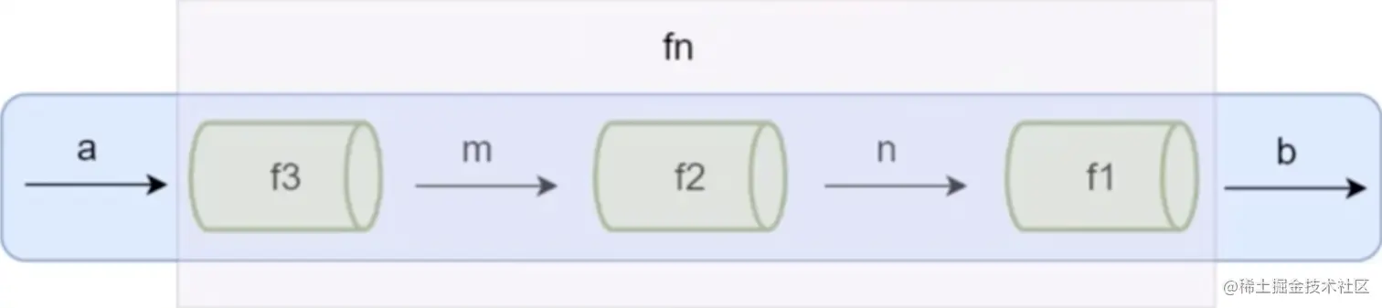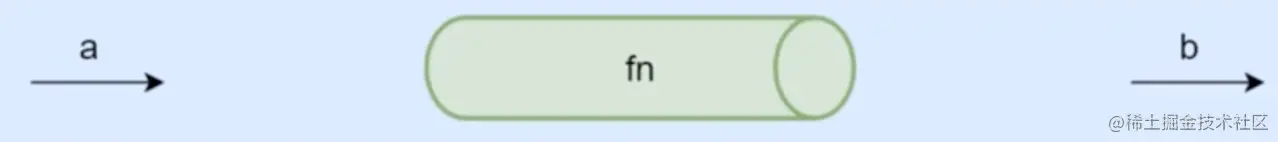 下面这张图表示程序中使用函数处理数据的过程,给fn输入参数a,返回结果b,可以想象a数据通过一个管道得到了b数据。