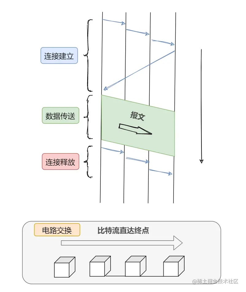其实大家记住电路交换的这个特点就好了:独占连接。用户始终占用端到端的固定传输带宽。适用于远程批处理信息传输或系统间实时性要求高的大量数据传输的情况。