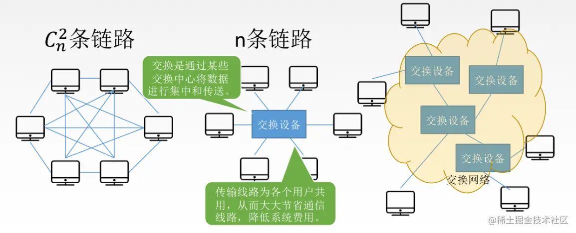 首先我们要知道什么是数据交换、为什么要数据交换:数据交换(Data Switching)是指在多个数据终端设备之间,为任意两个终端设备建立数据通信临时互连通路的过程。通俗来说交换是就通过某些交换中心将数据进行集中和传送,传输线路为各个用户共用,从而大大节省通信线路,降低系统费用。如果网络规模较大,则把交换设备连接在一起形成交换网络。