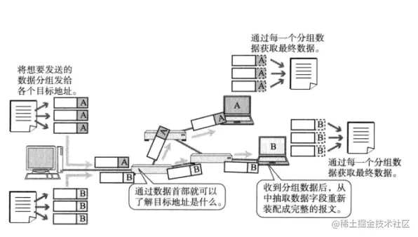 首先我们来了解下分组的概念。所谓分组,就是将一个大的数据包(报文)分成一个个更小的数据包,这些一个个更小的数据报就称为分组。在每个分组的首部写入发送端和接收端的地址,每个分组数据块的结构如下所示: