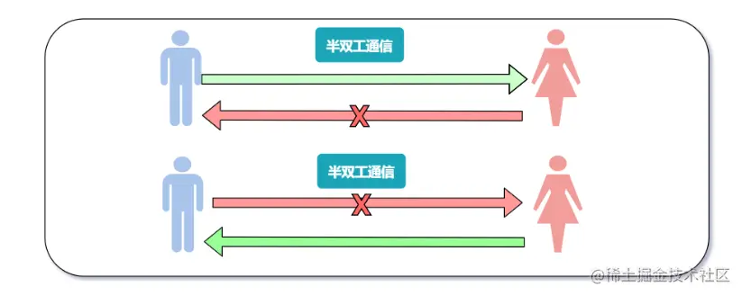 半双工数据传输是两数据站之间可以在两个方向上进行数据传输,但不能同时进行。即通信的双方都可以发送和接收,但不能同时发送和接收。交替传输,需要两条信道(类比对讲机)