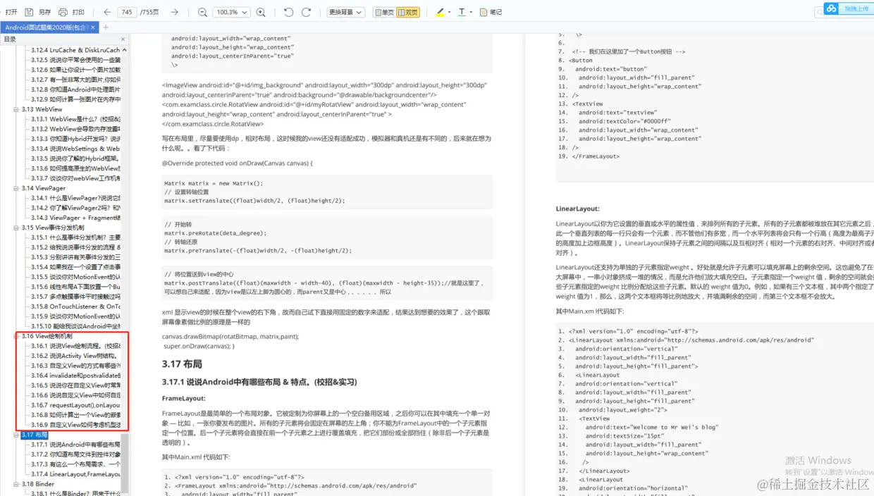 这些都是最基本的,除此之外,作为一个Android开发工程师,你需要熟悉常用第三方框架,比如组件化、插件化、热修复、图片加载框架、网络访问框架、rxjava、jetpack等等,能说出它们的工作原理,特性、优缺点等等。
