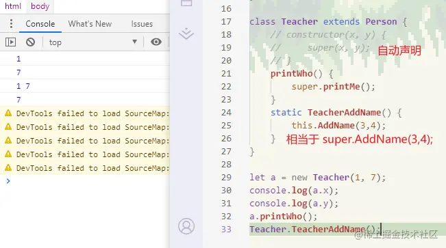 - 构造函数可以不声明,这样子会自动声明 super()。一旦声明了构造函数,就必须加 super()。