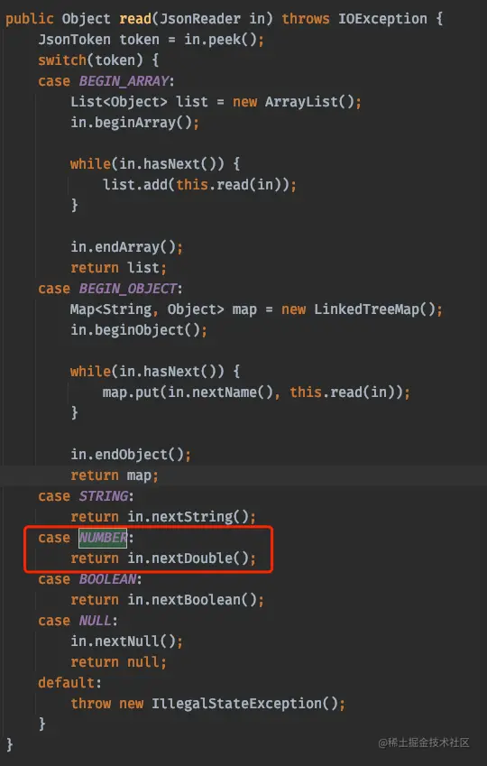 为何会有这种情况?简单的来说就是Gson在将json解析为Object类型时,会默认将数字类型使用double转换。