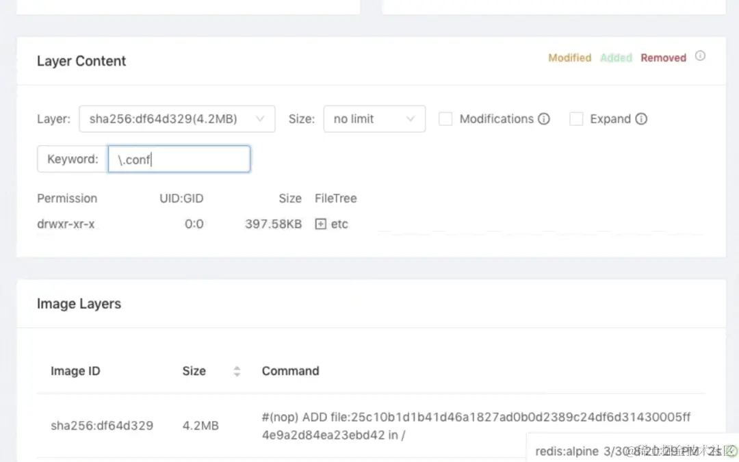 基于 dive 分析 docker 镜像,界面化展示了镜像每层的变动(增加、修改、删除等)、用户层数据大小等信息。便捷获取镜像信息和每层镜像内容的文件树,可以方便地浏览镜像信息。对于需要优化镜像体积时非常方便