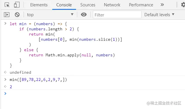 写一个 min 函数,要求 min(numbers) 能返回数组 numbers 中的最小数字
