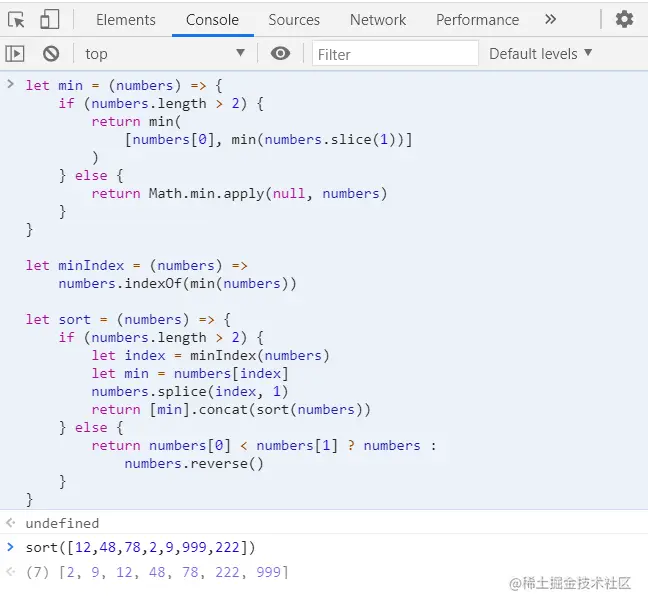 写出一个 sort 函数,要求 sort(numbers) 能返回一个把 numbers 从小到大排列的数组(可以添加多余的帮助函数)