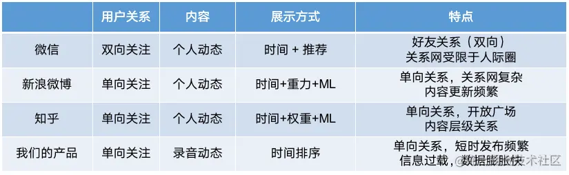 (1)用户关系建立简单,只需要满足单向关注关系。内容上呈现用户录音,录音自动发布,短时高频生产内容,数据膨胀速度会很快