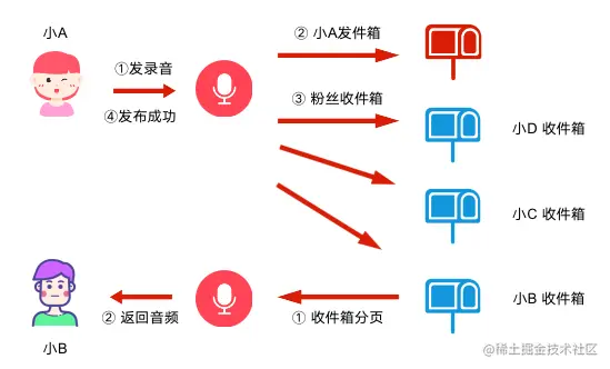 在Feed流场景中,通用方案是基于用户收发件箱的推拉流方案。