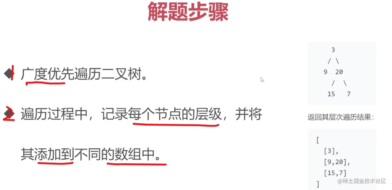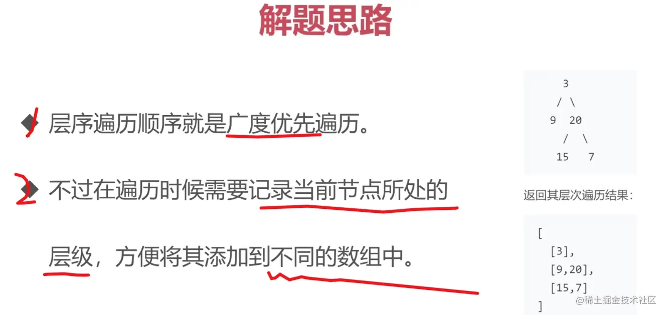 * 注意 这个地方需要注意 广度优先遍历获取每个层级的方式是改成数组