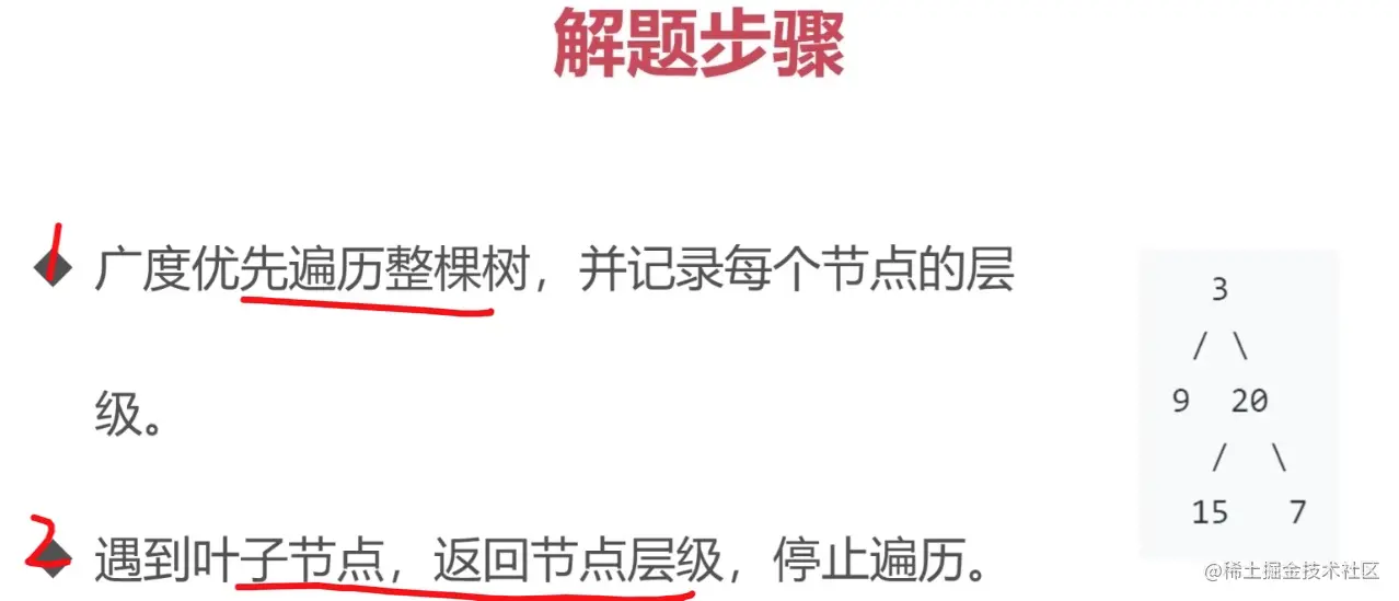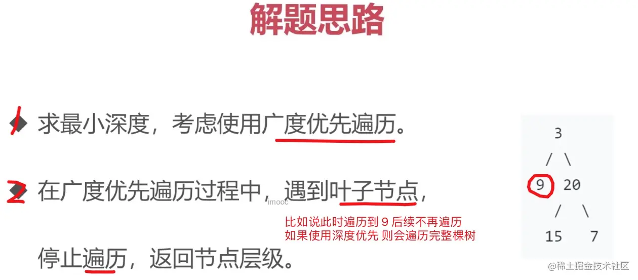 - 找到叶子节点 求最小深度