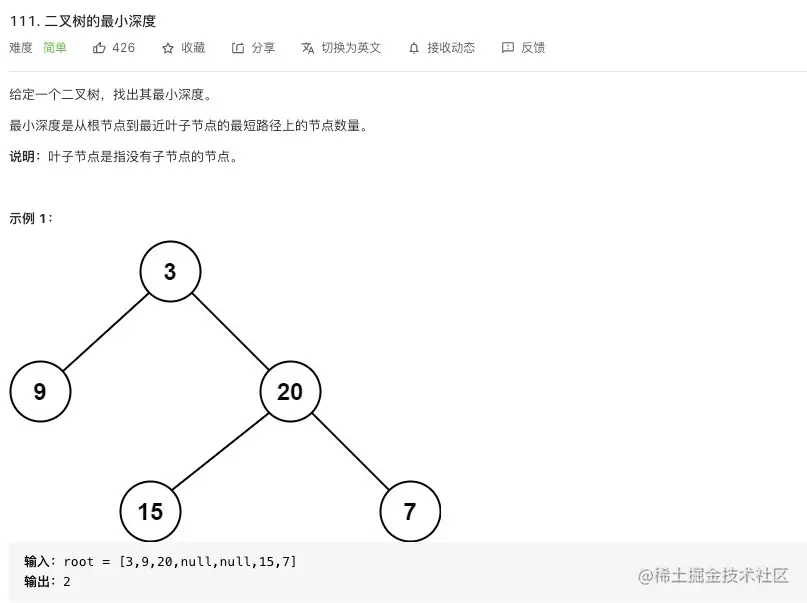 2、leetcode 111 二叉树最小深度