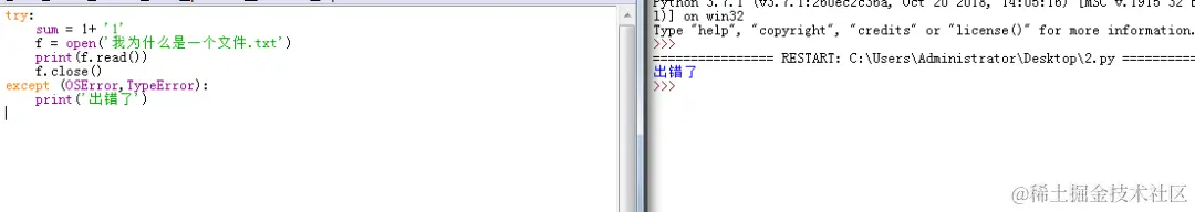 无论捕获 OSError 还是 TypeError,都会出现这个提示。\