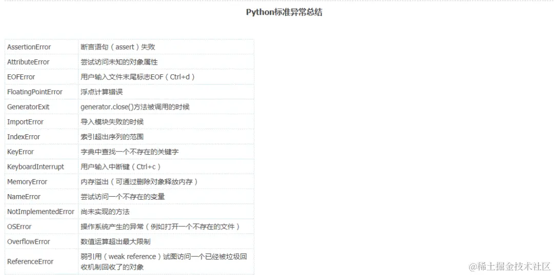 2、python 通常会引发的异常有哪些?