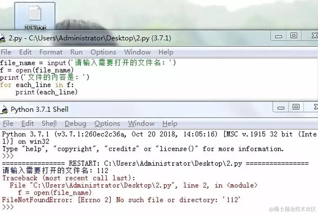1、举个异常的例子:例如用户输入文件名,没有加 .txt,就会报错。输入正确的文件名。