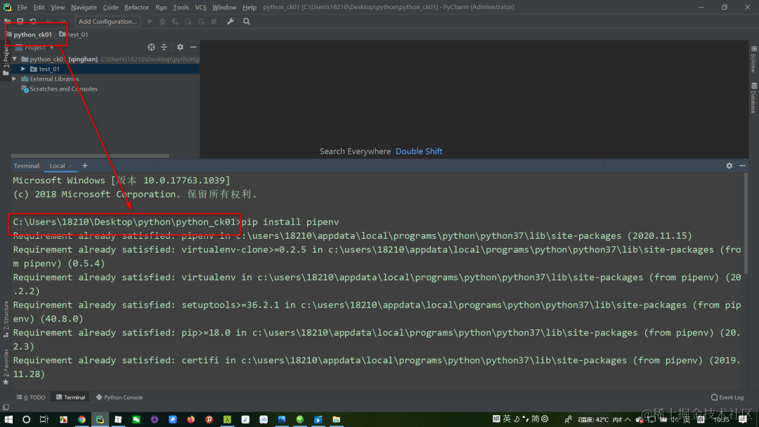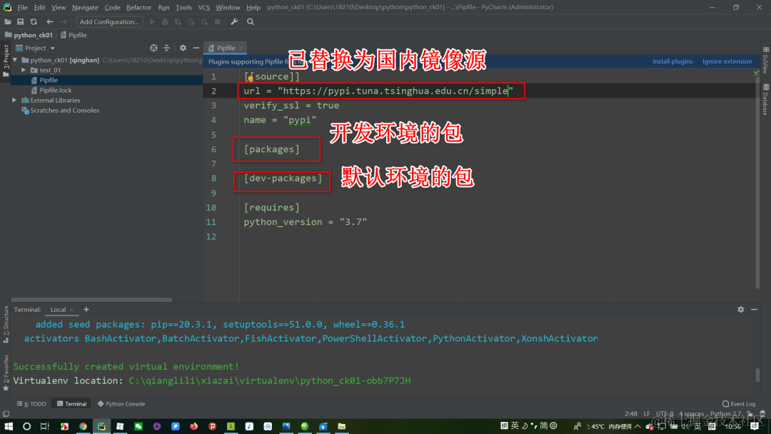 在把这2个文件复制到python_ck01文件夹下,恢复的时候会自动化安装[packages]下面的包。