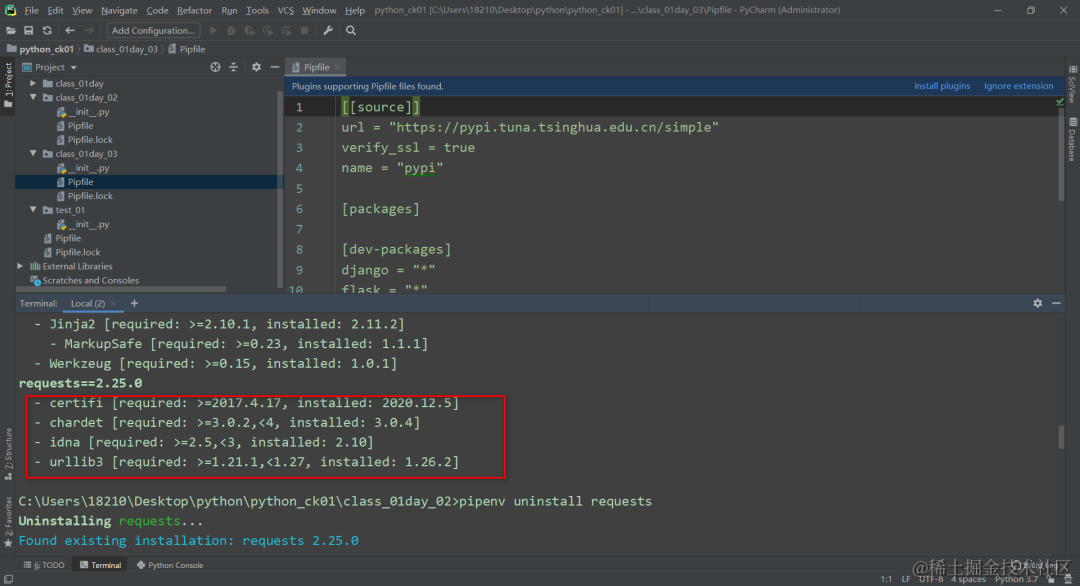 卸载命令:pipenv uninstall requests