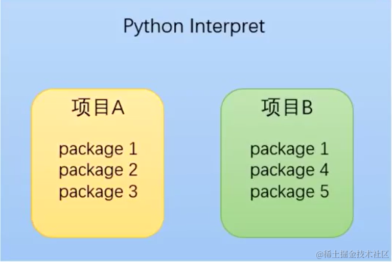 Python虚拟环境的主要目的是:为了给不同的工程创建互相独立的运行环境。在虚拟环境下,每一个工程都有自己的依赖包,而与其它的工程无关。